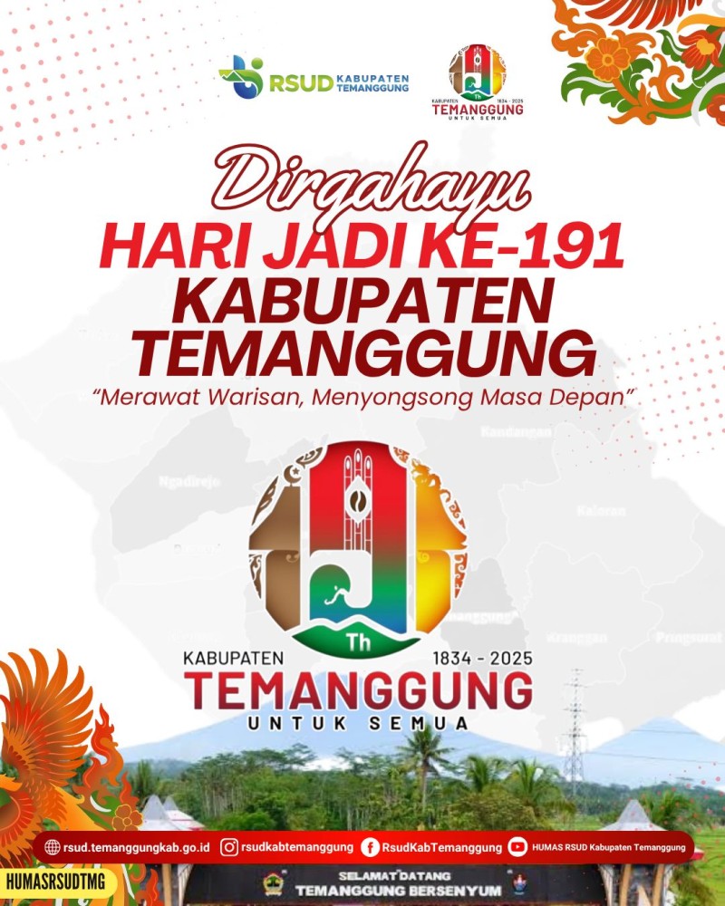 Berita Kategori: Smart Government (Pemerintah Cerdas) Instalasi Rabu, 19/11/2025 13:02 47 Glowing Starts Here! Selengkapnya Kategori: Smart Government (Pemerintah Cerdas) Instalasi Selasa, 18/11/2025 10:34 25 Pelepasan 18 Dokter Internship dan 10 Dokter Gigi Internship di RSUD Kabupaten Temanggung, Senin(17/11/2025) Selengkapnya Kategori: Smart Government (Pemerintah Cerdas) Instalasi Selasa, 18/11/2025 10:26 23 Selamat Hari Prematur Sedunia, 17 November 2025 Selengkapnya Kategori: Smart Government (Pemerintah Cerdas) Instalasi Senin, 17/11/2025 10:24 31 Innalillahi wa inna ilaihi rojiun Telah meninggal dunia bapak AGUS SRI HARJUNO Bapak dari dr. Fitri Emi Sri Parastri (Kasi Penunjang Medis) Bapak Mertua dari dr. Argoseto, Sp.An Selengkapnya Kategori: Smart Government (Pemerintah Cerdas) Instalasi Senin, 17/11/2025 07:42 28 RSUD Kabupaten Temanggung Lakukan Kerja Bakti Jumat Bersih di Sepanjang Jalan Perintis Kemerdekaan Selengkapnya Kategori: Smart Government (Pemerintah Cerdas) Instalasi Rabu, 12/11/2025 09:20 28 Selamat Hari Kesehatan Nasional ke-61 Selengkapnya Kategori: Smart Government (Pemerintah Cerdas) Instalasi Selasa, 11/11/2025 09:22 31 BPJS Kesehatan Lakukan Rekredensialing di RSUD Kabupaten Temanggung: Wujud Peningkatan Mutu Layanan Selengkapnya Kategori: Smart Government (Pemerintah Cerdas) Instalasi Senin, 10/11/2025 09:16 26 Dirgahayu Ke-191 Kabupaten Temanggung Selengkapnya Kategori: Smart Government (Pemerintah Cerdas) Instalasi Senin, 10/11/2025 09:15 26 Selamat Memperingati Hari Pahlawan Nasional 10 November 2025 Selengkapnya Kategori: Smart Government (Pemerintah Cerdas) Instalasi Sabtu, 08/11/2025 09:14 23 Apel Pagi RSUD Kabupaten Temanggung sekaligus Perkenalan Pegawai Baru Selengkapnya Kategori: Smart Government (Pemerintah Cerdas) Instalasi Sabtu, 08/11/2025 09:09 20 Gebyar PKK & Peringatan Hari Jadi Korpri ke-54 Selengkapnya Kategori: Smart Government (Pemerintah Cerdas) Instalasi Jumat, 07/11/2025 09:08 20 HARI JADI KE-191 KABUPATEN TEMANGGUNG Selengkapnya FirstPrev23456NextLast