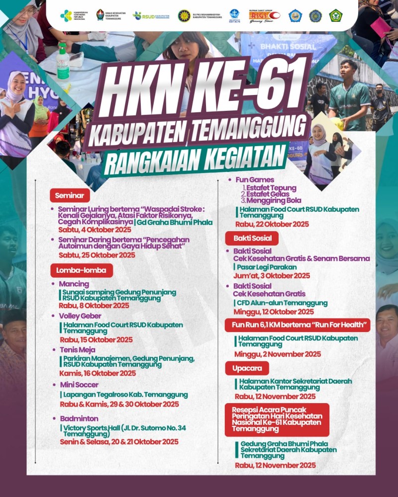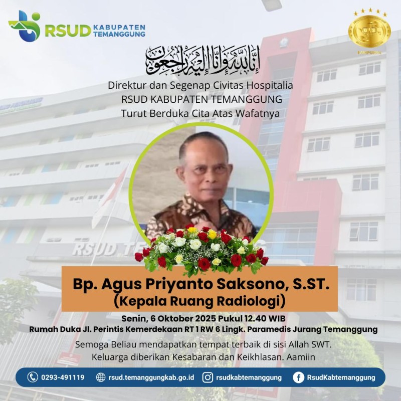 Berita Kategori: Smart Government (Pemerintah Cerdas) Instalasi Jumat, 17/10/2025 08:49 11 SEMINAR HKN KE 61- PENCEGAHAN PENYAKIT AUTOIMUN DENGAN GAYA HIDUP SEHAT Selengkapnya Kategori: Smart Government (Pemerintah Cerdas) Instalasi Sabtu, 11/10/2025 14:33 34 BAKTI SOSIAL HKN KE-61 Selengkapnya Kategori: Smart Government (Pemerintah Cerdas) Instalasi Rabu, 08/10/2025 10:01 28 SERI EDUKASI UNTUK MASYARAKAT EDISI 26 Selengkapnya Kategori: Smart Government (Pemerintah Cerdas) SPI Rabu, 08/10/2025 09:48 31 Penerimaan Dokter Muda Periode 72, oleh Direktur RSUD dan Dihadiri Ketua Timkordik serta Perwakilan Dekan FK UMY Selengkapnya Kategori: Smart Government (Pemerintah Cerdas) SPI Rabu, 08/10/2025 00:58 24 Lomba Mancing dalam Rangka HKN ke-61 Kabupaten Temanggung Selengkapnya Kategori: Smart Government (Pemerintah Cerdas) SPI Selasa, 07/10/2025 11:42 23 LOMBA MANCING Selengkapnya Kategori: Smart Government (Pemerintah Cerdas) Instalasi Selasa, 07/10/2025 09:54 58 Direktur dan segenap Civitas Hospitalia RSUD Kabupaten Temanggung turut berduka cita yang mendalam atas wafatnya: Bapak AGUS PRIYANTO SAKSONO, S.ST. Selengkapnya Kategori: Smart Government (Pemerintah Cerdas) SPI Selasa, 07/10/2025 09:30 20 Waspada Stroke, Civitas Kesehatan Temanggung Gelar Seminar Peringatan HKN ke-61 Selengkapnya Kategori: Smart Government (Pemerintah Cerdas) SPI Senin, 06/10/2025 09:39 20 Entry Meeting Pemeriksaan Pendahuluan PBJ Tahun 2024–2025 di Kabupaten Temanggung Selengkapnya Kategori: Smart Government (Pemerintah Cerdas) Instalasi Senin, 06/10/2025 09:38 28 Dirgahayu TNI ke-80 Selengkapnya Kategori: Smart Government (Pemerintah Cerdas) Instalasi Sabtu, 04/10/2025 09:35 35 HKN ke-61 Kabupaten Temanggung Selengkapnya Kategori: Smart Government (Pemerintah Cerdas) Instalasi Sabtu, 04/10/2025 09:31 40 Gebyar PKK Temanggung Meriah dengan Nuansa Batik Selengkapnya FirstPrev56789NextLast