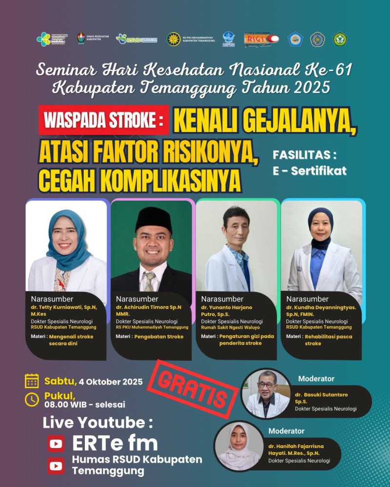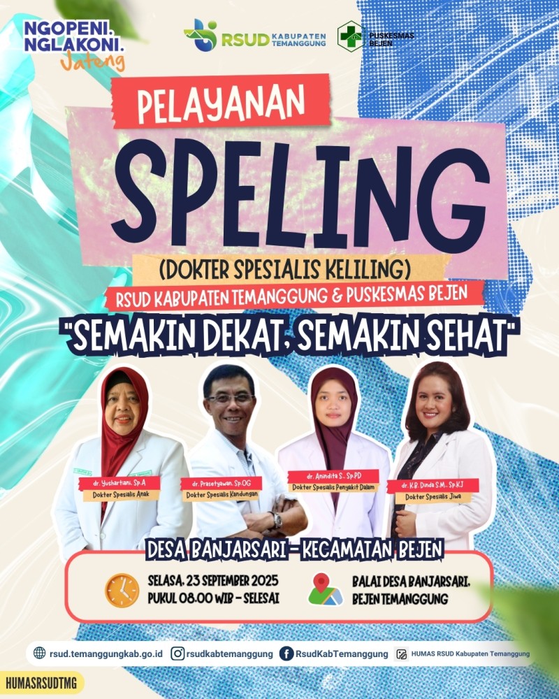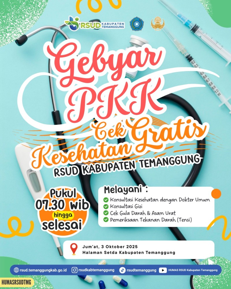 Berita Kategori: Smart Government (Pemerintah Cerdas) Instalasi Sabtu, 04/10/2025 09:30 31 Seminar Stroke GRATIS! Gak bisa hadir langsung? Tenang, tetap bisa ikut lewat LIVE YouTube Selengkapnya Kategori: Smart Government (Pemerintah Cerdas) Instalasi Sabtu, 04/10/2025 09:27 32 RSUD Kabupaten Temanggung hadir di Gebyar PKK Selengkapnya Kategori: Smart Government (Pemerintah Cerdas) Bidang Pelayanan Medis Jumat, 03/10/2025 09:25 198 RSUD Kabupaten Temanggung Siapkan Gedung Poliklinik Baru Senilai Rp165 Miliar, Proyek Dikawal LKPP Selengkapnya Kategori: Smart Government (Pemerintah Cerdas) Instalasi Jumat, 03/10/2025 09:21 29 BAKTI SOSIAL HKN KE-61 Selengkapnya Kategori: Smart Government (Pemerintah Cerdas) Bagian Umum dan Perlengkapan Rabu, 01/10/2025 09:18 12 Apel Pagi RSUD Kabupaten Temanggung Selengkapnya Kategori: Smart Government (Pemerintah Cerdas) Instalasi Rabu, 01/10/2025 09:17 21 Selamat Hari Kesaktian Pancasila 1 Oktober 2025 Selengkapnya Kategori: Smart Government (Pemerintah Cerdas) SPI Selasa, 30/09/2025 08:31 227 Rangkaian Kegiatan HKN ke-61 Kabupaten Temanggung Selengkapnya Kategori: Smart Government (Pemerintah Cerdas) SPI Sabtu, 27/09/2025 12:10 121 ORIENTASI MAHASISWA dan SISWA PRAKTIK DI RSUD KABUPATEN TEMANGGUNG Selengkapnya Kategori: Smart Government (Pemerintah Cerdas) SPI Rabu, 24/09/2025 10:08 119 Pelayanan Speling RSUD Kabupaten Temanggung Hadir di Desa Banjarsari, Kecamatan Bejen Selengkapnya Kategori: Smart Government (Pemerintah Cerdas) Instalasi Selasa, 23/09/2025 08:12 111 Pelayanan SPELING (Dokter Spesialis Keliling) Hadir Lebih Dekat dengan Anda! Selengkapnya Kategori: Smart Government (Pemerintah Cerdas) Instalasi Sabtu, 20/09/2025 09:02 139 Pelantikan & Pengambilan Sumpah/Janji ASN Kabupaten Temanggung Selengkapnya Kategori: Smart Government (Pemerintah Cerdas) Instalasi Jumat, 19/09/2025 08:12 140 Waspada Stroke: Kenali Gejalanya, Atasi Faktor Risikonya, Cegah Komplikasinya! Selengkapnya FirstPrev678910NextLast