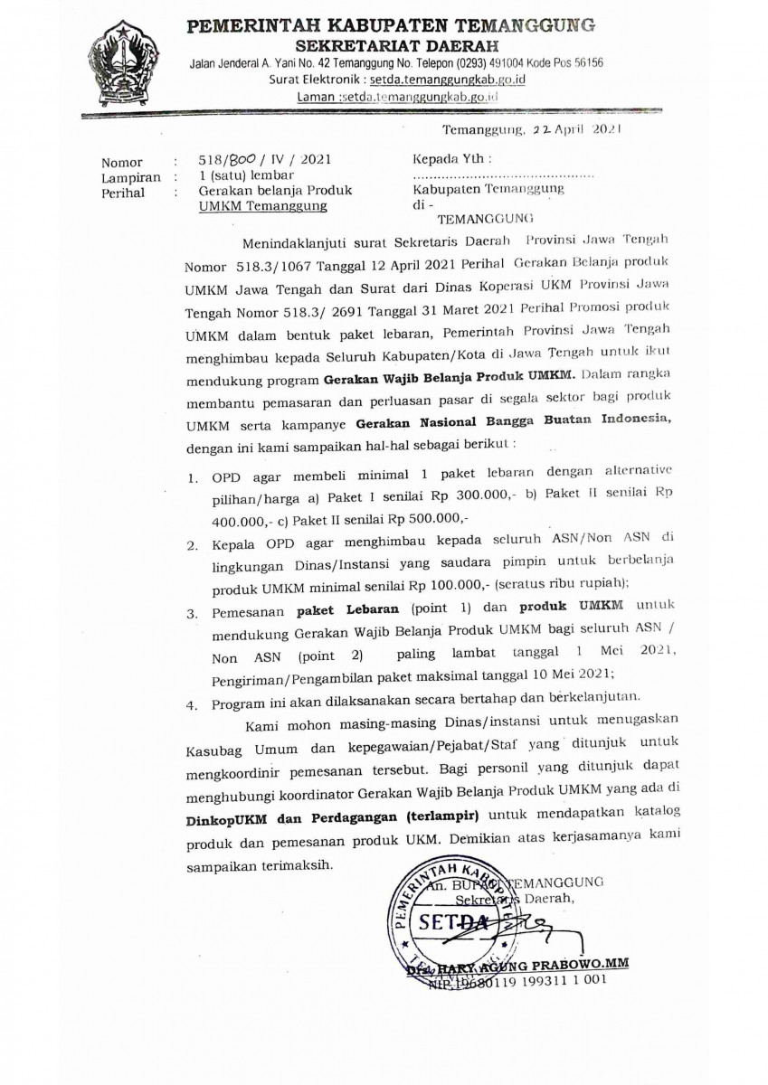 Gerakan Belanja Produk UMKM Temanggung Kategori: Smart Government (Pemerintah Cerdas) Jumat, 30/04/2021 03:33 519